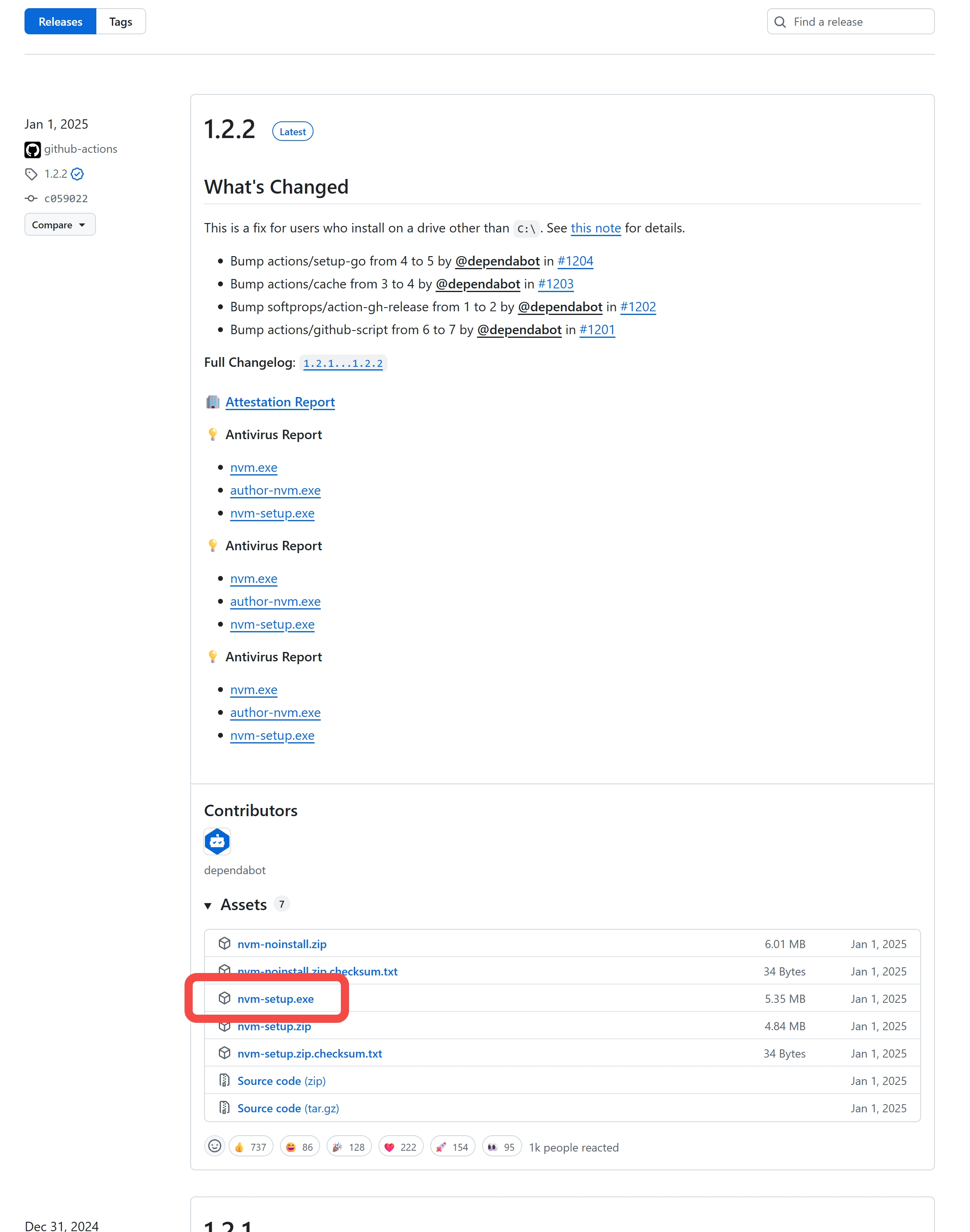 前往 GitHub Releases 页面下载最新的 nvm-setup.exe:nvm-windows releases